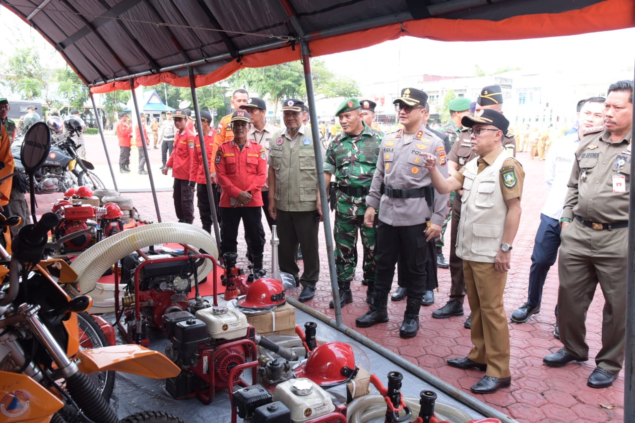Pada kesempatan itu juga di cek langsung kondisi alat pemadam kebakaran hutan dan lahan.