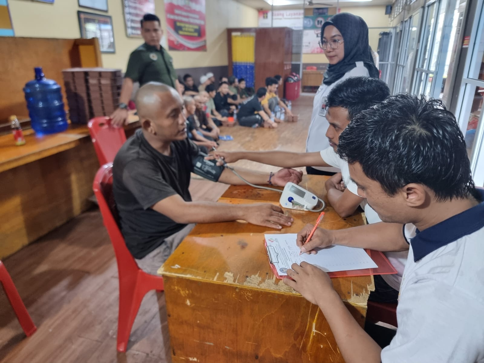 cMczone.com, PEKANBARU| Pemeriksaan skrining awal kesehatan bagi warga binaan merupakan sebuah keharusan bagi petugas Lapas Hal ini lah yang dilakukan oleh tim medis Lapas Pekanbaru terhadap terhadap 50 (lima puluh) orang warga binaan pemasyarakatan yang baru dipindahkan dari Rutan sialang bungkuk pada Rabu sore (05/06/25).