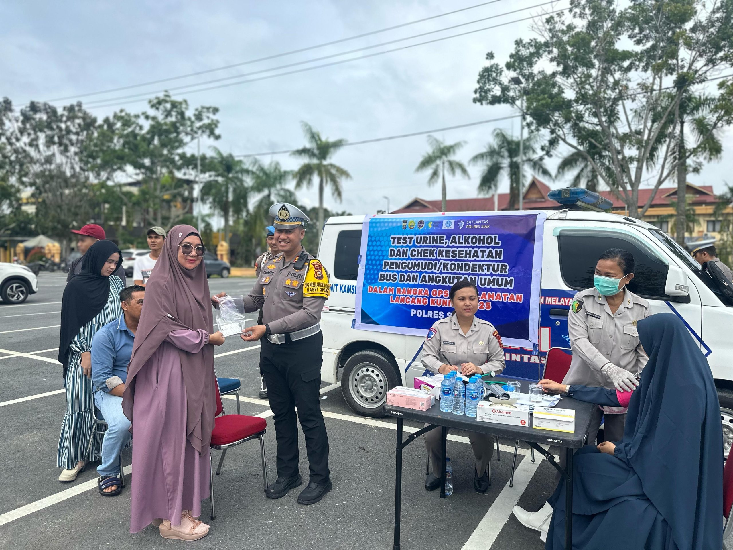 cMczone.com, Siak,– Menjelang berakhirnya Operasi Keselamatan Lancang Kuning 2025, Satuan Lalu Lintas (Sat Lantas) Polres Siak mengadakan kegiatan pemeriksaan kadar alkohol, tes urine, dan pengecekan kesehatan bagi para pengemudi angkutan umum dan barang.
