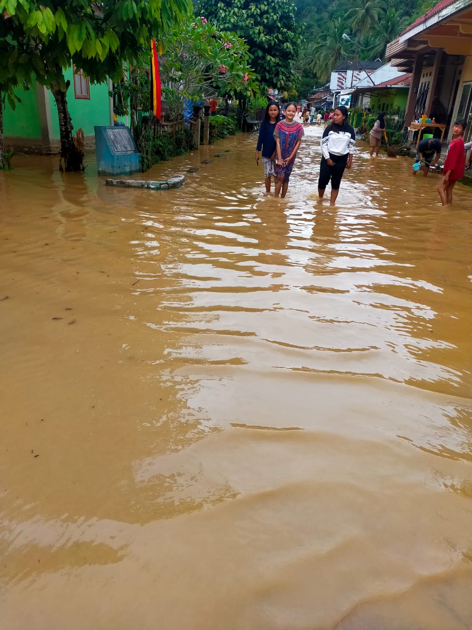 Bukan hanya puluhan rumah dan sawah saja yang terendam. Bahkan ada satu rumah, dapur nya terhantam oleh batang kelapa yang hanyut.