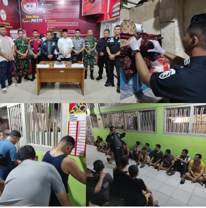 cMczone.com, PEKANBARU – Sebagai langkah antisipasi dan deteksi dini potensi gangguan keamanan dan ketertiban menjelang Hari Raya Idul Fitri 1446 H, Lembaga Pemasyarakatan (Lapas) Kelas IIA Pekanbaru bersinergi dengan TNI dan Polri dalam menggelar razia gabungan kamar hunian warga binaan, Senin malam (24/03).