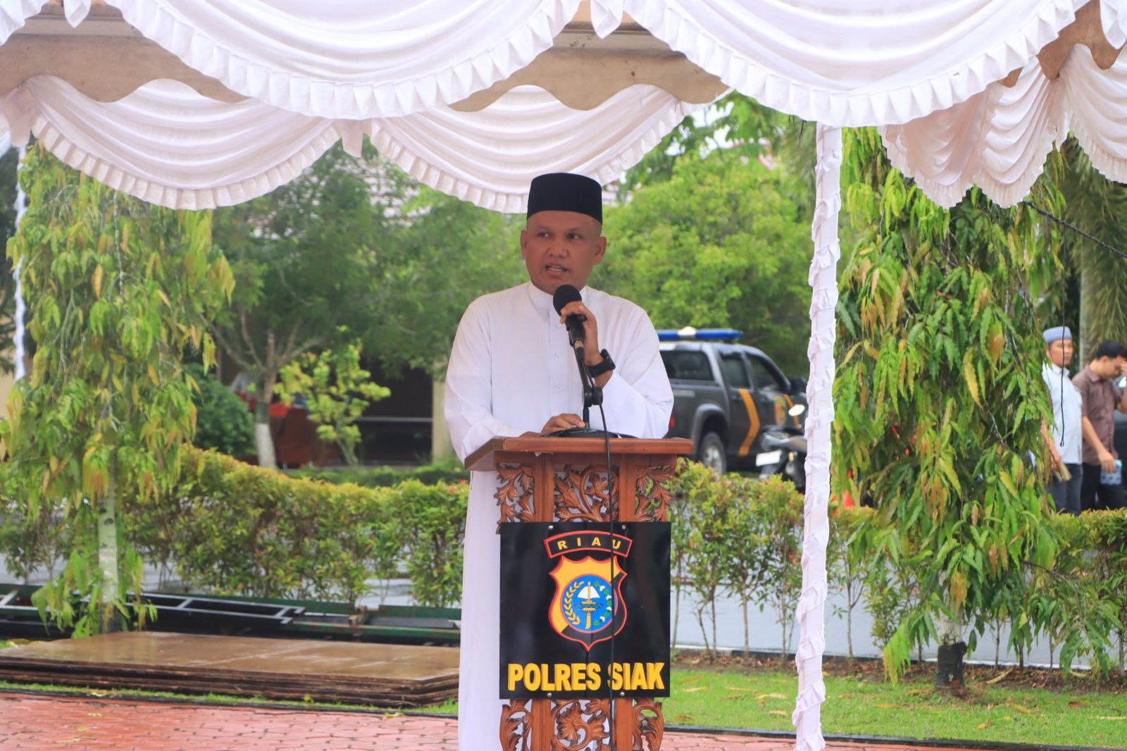 cMczone.com, Siak, 1 Syawal 1446 H – Suasana penuh khidmat menyelimuti pelaksanaan Sholat Idul Fitri 1446 H/2025 M yang digelar di Halaman Apel Polres Siak. Ratusan jamaah, baik dari seluruh PJU Polres Siak, personil Polres Siak dan Polsek jajaran maupun masyarakat umum, memadati lokasi sejak pagi untuk melaksanakan ibadah hari raya yang penuh berkah ini.