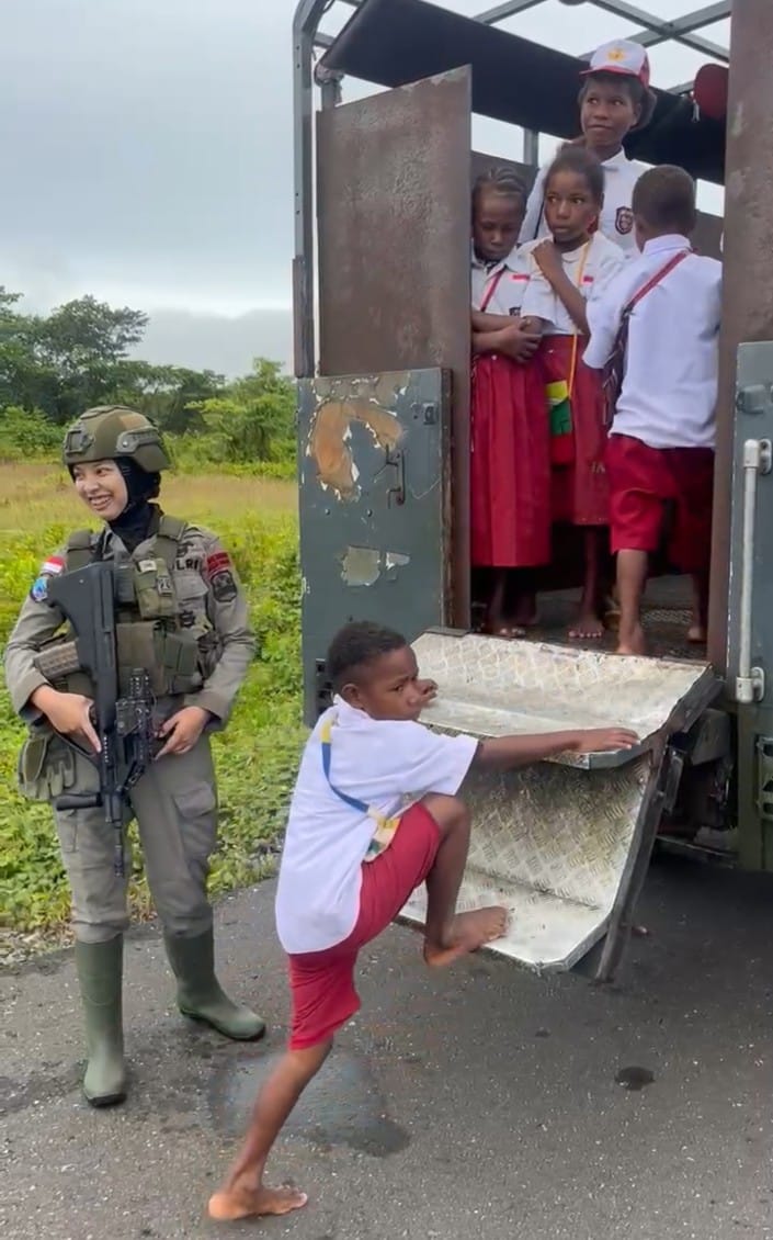 cMczone.com, Nduga – Dalam semangat memperingati Hari Kartini 2025, personel Operasi Damai Cartenz-2025 melaksanakan patroli dialogis di seputaran Kota Kenyam, Kabupaten Nduga. Kegiatan ini tak sekadar menjaga situasi kamtibmas, tapi juga menjadi bentuk nyata kepedulian sosial dengan membantu anak-anak menuju sekolah, mencerminkan nilai-nilai perjuangan Kartini dalam konteks kekinian.