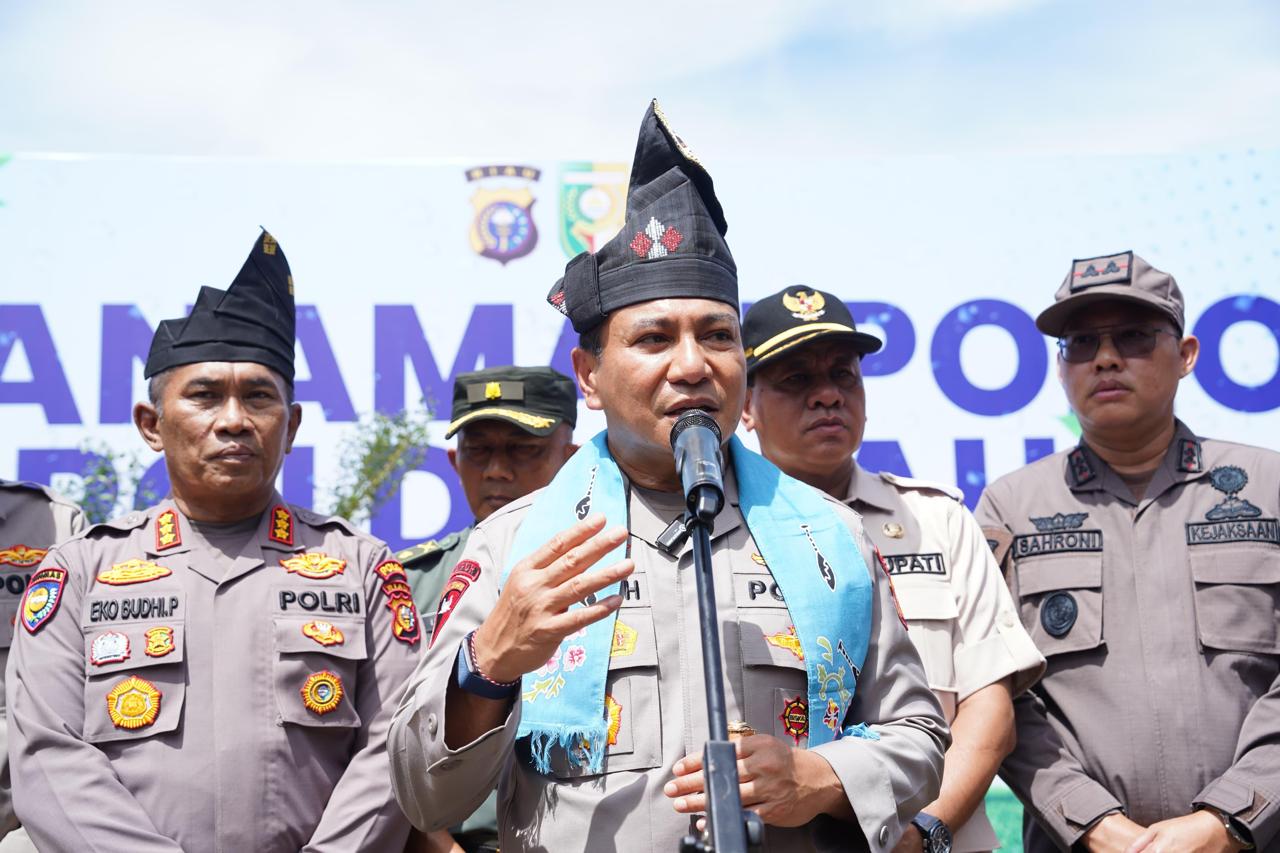 cMczone.com, Kuansing – Kapolda Riau Irjen Herry Heryawan kembali melanjutkan penanaman pohon di Kabupaten Kuantan Singingi (Kuansing). Ia bicara pentingnya penanaman pohon sebagai langkah jangka panjang mencegah terjadinya kebakaran hutan dan lahan (karhutla).