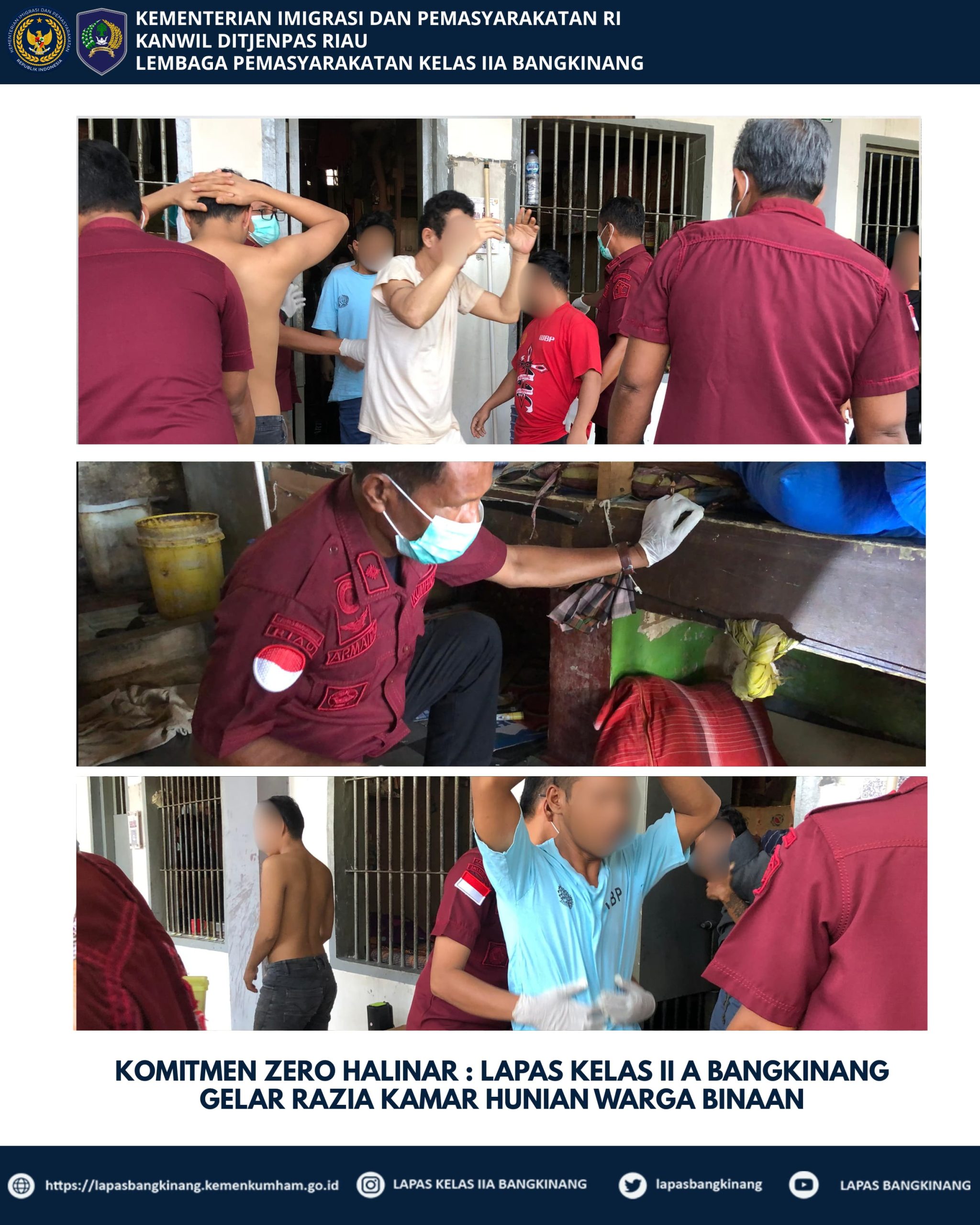 Kepala Lembaga Pemasyarakatan (Kalapas) Kelas IIA Bangkinang, Alexander Lisman Putra selalu menyampaikan kepada seluruh jajarannya agar dalam pelaksanaan tugas untuk dilaksanakan dengan penuh semangat dan tanggung jawab serta untuk selalu melaporkan kejadian yang terjadi di dalam Lapas secara berjenjang dan kegiatan Razia ini juga merupakan bentuk tindaklanjut Lapas Bangkinang dalam menindaklanjuti Arahan 13 (tiga belas) Program Akselerasi Menteri Imigrasi dan Pemasyarakatan, Bapak Agus Andrianto khususnya pada poin 1 (satu) yakni Memberantas Peredaran Narkoba dan Pelaku Penipuan dengan berbagai modus di Lapas dan Rutan.