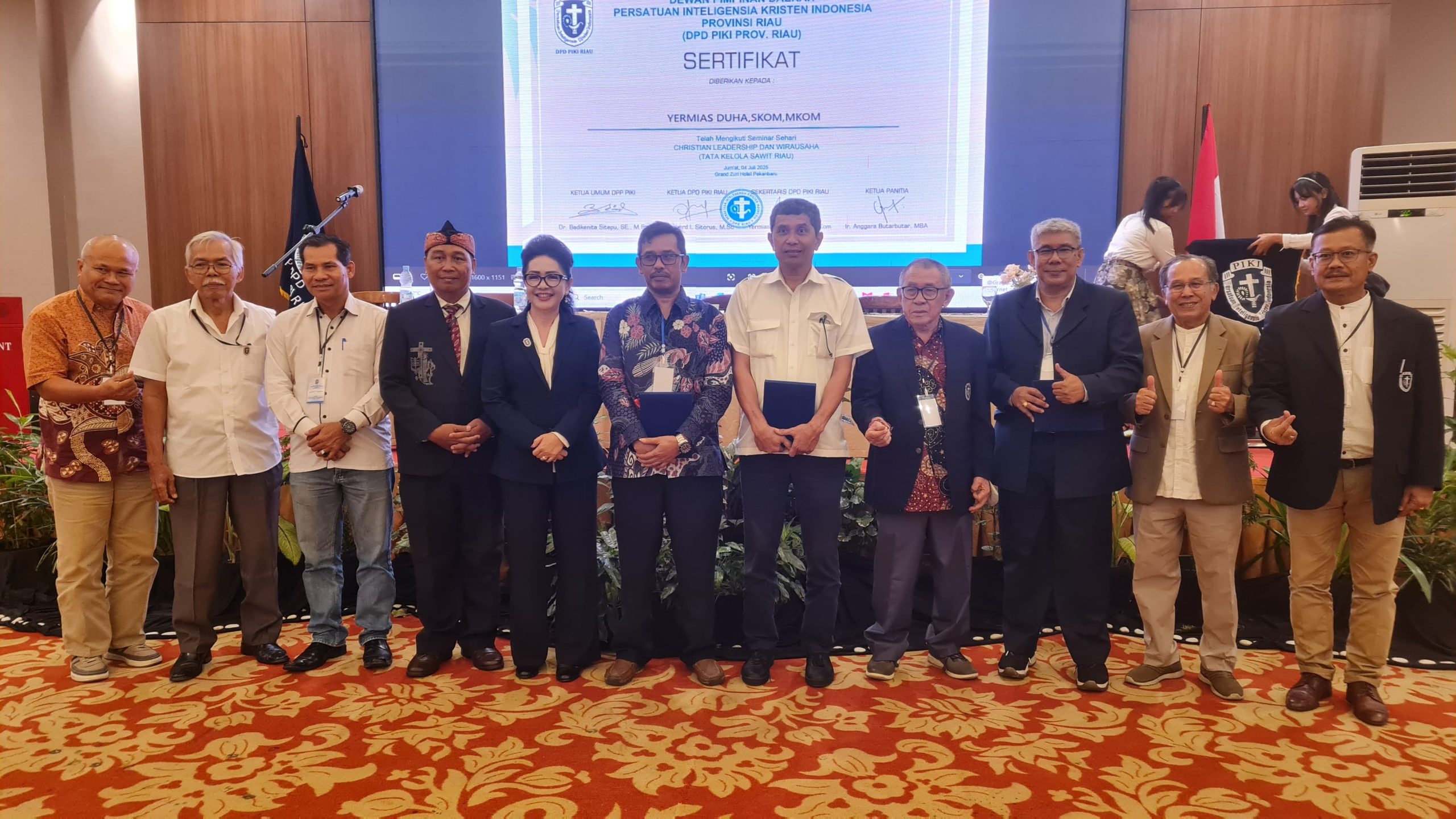 cMczone.com,Pekan Baru – DPD Persatuan Intelegensia Kristen Indonesia (PIKI) Provinsi Riau menyelenggarakan seminar Sehari Christian leadership serta tata kelola sawit atau dapat disebut Seminar sehari kepemimpinan Kristen dan diskusi membahas tata kelola kelapa sawit. Kegiatan ini berlangsung di Hotel Grand Zuri pada Jumat (4/7/2025).