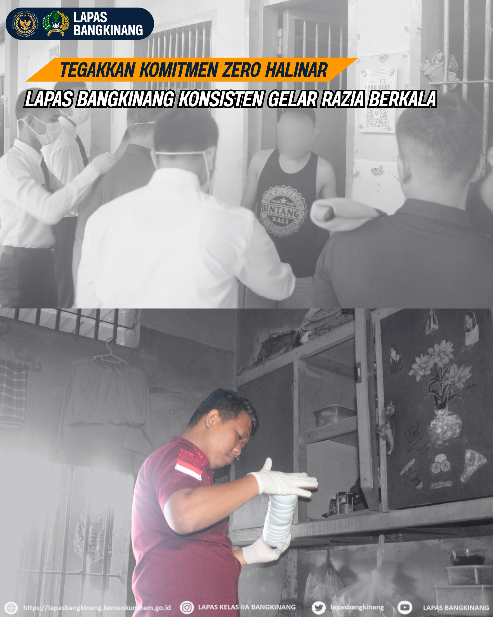 “Lapas IIA Bangkinang akan terus melakukan Antisipasi dan meningkatkan keamanan dalam rangka menciptakan suasana kondusif dan membangun pembinaan yang maksimal bagi warga binaan. Kegiatan ini sebagai upaya dan tindak lanjut dalam menjalankan arahan Menteri Imigrasi dan Pemasyarakatan, Bapak Agus andrianto. Kami akan terus melakukan kegiatan razia berkala seperti ini untuk mencegah segala bentuk pelanggaran dan gangguan keamanan di dalam Lapas. Ini adalah komitmen kami dalam mewujudkan organisasi yang bersih dan terbebas dari penyalahgunaan dan peredaran gelap narkoba dan barang-barang terlarang lainnya di lingkungan Lapas,” Tegas Alexander.