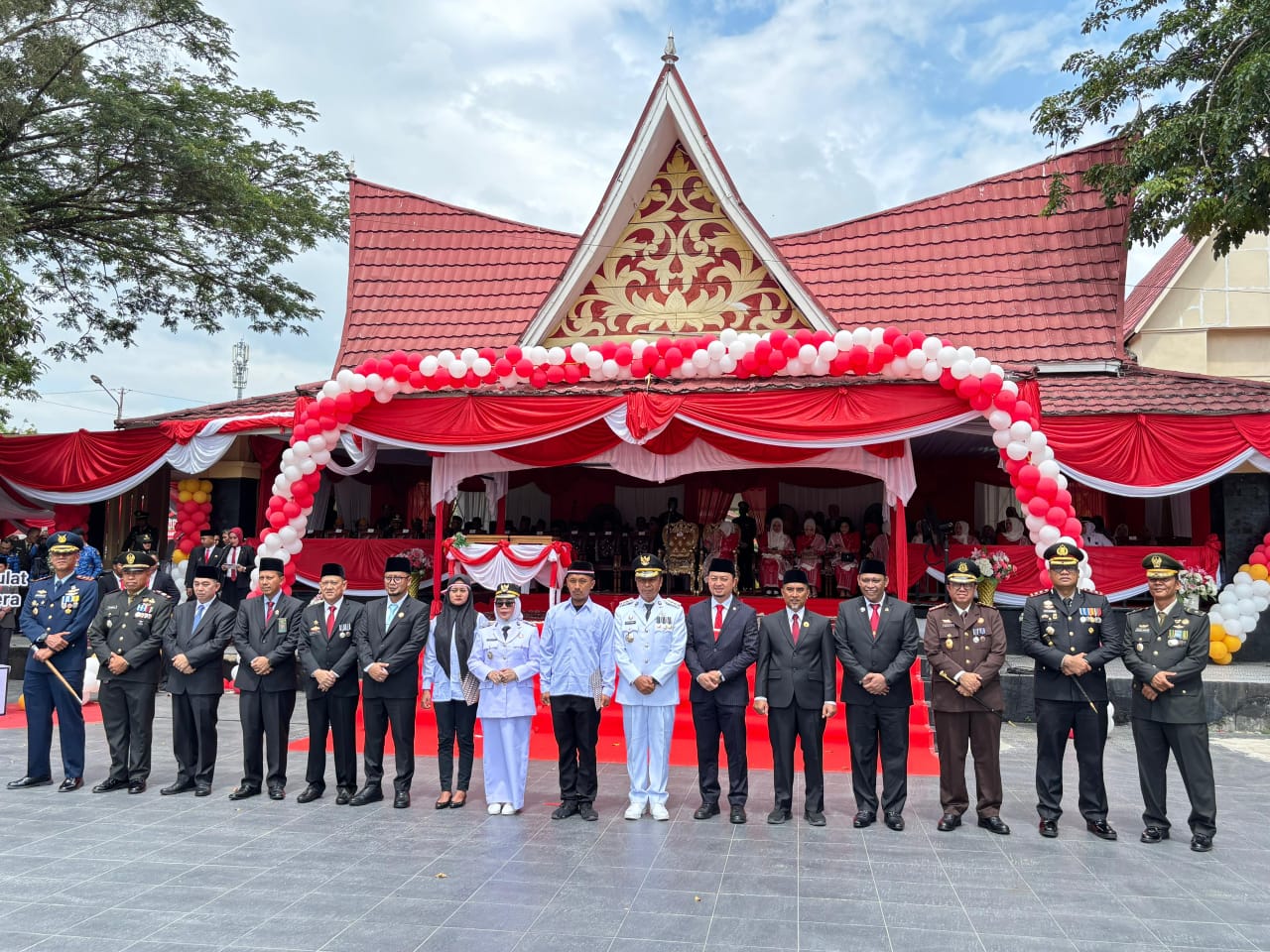 Bupati Kampar, Ahmad Yuzar, S.Sos., M.Si., bertindak sebagai Inspektur Upacara. bersama Wakil Bupati Kampar, Dr. Misharti, S.Ag., M.Si., jajaran Forkopimda Kabupaten Kampar beserta isteri, staf ahli bupati, para asisten Setda Kampar, pimpinan OPD, Camat Bangkinang Kota Minda, SH, serta perwakilan TNI/Polri turut hadir dalam Upacara ini. Tidak hanya itu, ASN, BUMN/BUMD, organisasi masyarakat, dan para pelajar juga turut serta. Masyarakat tampak memadati area sekitar lapangan untuk menyaksikan langsung prosesi pengibaran Sang Merah Putih.