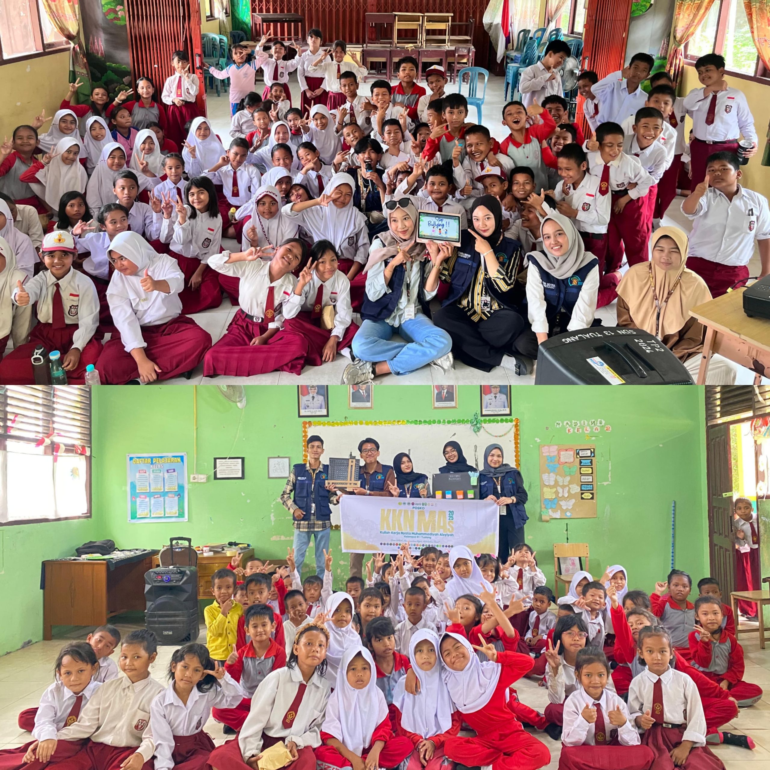 Melalui program kerja KKN MAS Muhammadiyah Aisyiyah 2025 yang dijalankan oleh mahasiswa dari Universitas Ahmad Dahlan Yogyakarta, Universitas Muhammadiyah Cirebon, Universitas Muhammadiyah Riau, STKIP Muhammadiyah Palembang, dan Universitas Muhammadiyah Padang, kami mengidentifikasi dua masalah utama yang kerap dihadapi sekolah dasar: kesulitan siswa kelas rendah dalam memahami konsep matematika dan maraknya perilaku bullying di kalangan siswa kelas tinggi. Matematika sering dianggap momok menakutkan karena metode pembelajaran yang monoton, sementara bullying menjadi masalah serius yang dapat berdampak pada trauma psikologis anak. Data menunjukkan bahwa 84% siswa pernah mengalami bullying di lingkungan sekolah, dan hal ini terbukti ketika dalam pelaksanaan program kami ditemukan kasus bullying yang membuat beberapa anak menangis. Meski awalnya membuat bingung, situasi ini justru memperkuat urgensi program edukasi anti-bullying yang kami laksanakan.