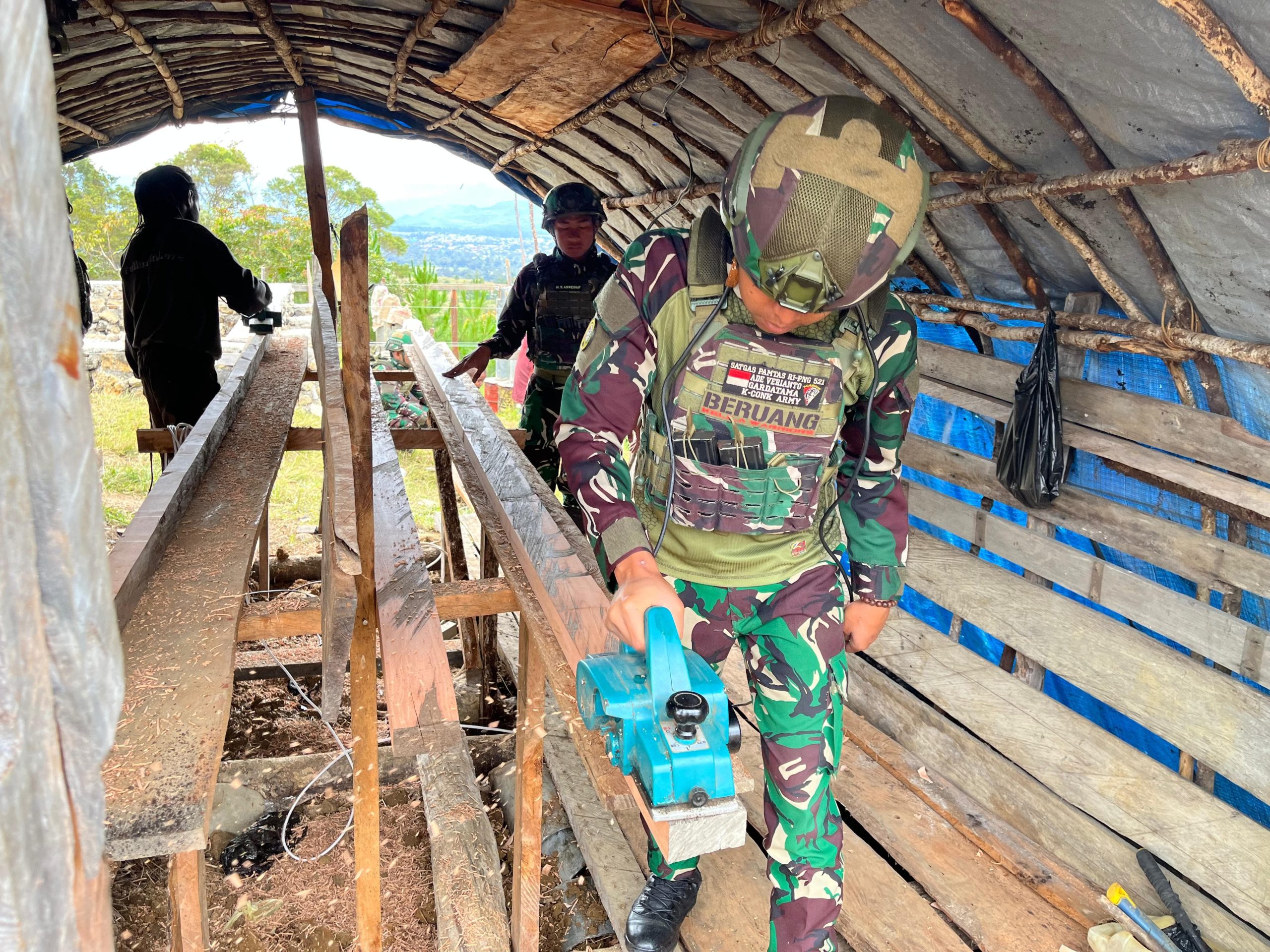 cMczone.com, Jayawijaya, — Bantu Bangun Rumah layak huni ini Sebagai bagian dari program kesejahteraan dan kepedulian sosial di daerah operasi, Program ini merupakan wujud nyata kepedulian TNI terhadap masyarakat setempat, meningkatkan kualitas hidup mereka melalui pembangunan rumah layak huni di berbagai wilayah seperti di Kampung Napua, Distrik Napua, Kab. Jayawijaya, Papua Pegunungan. (4/9/2025).