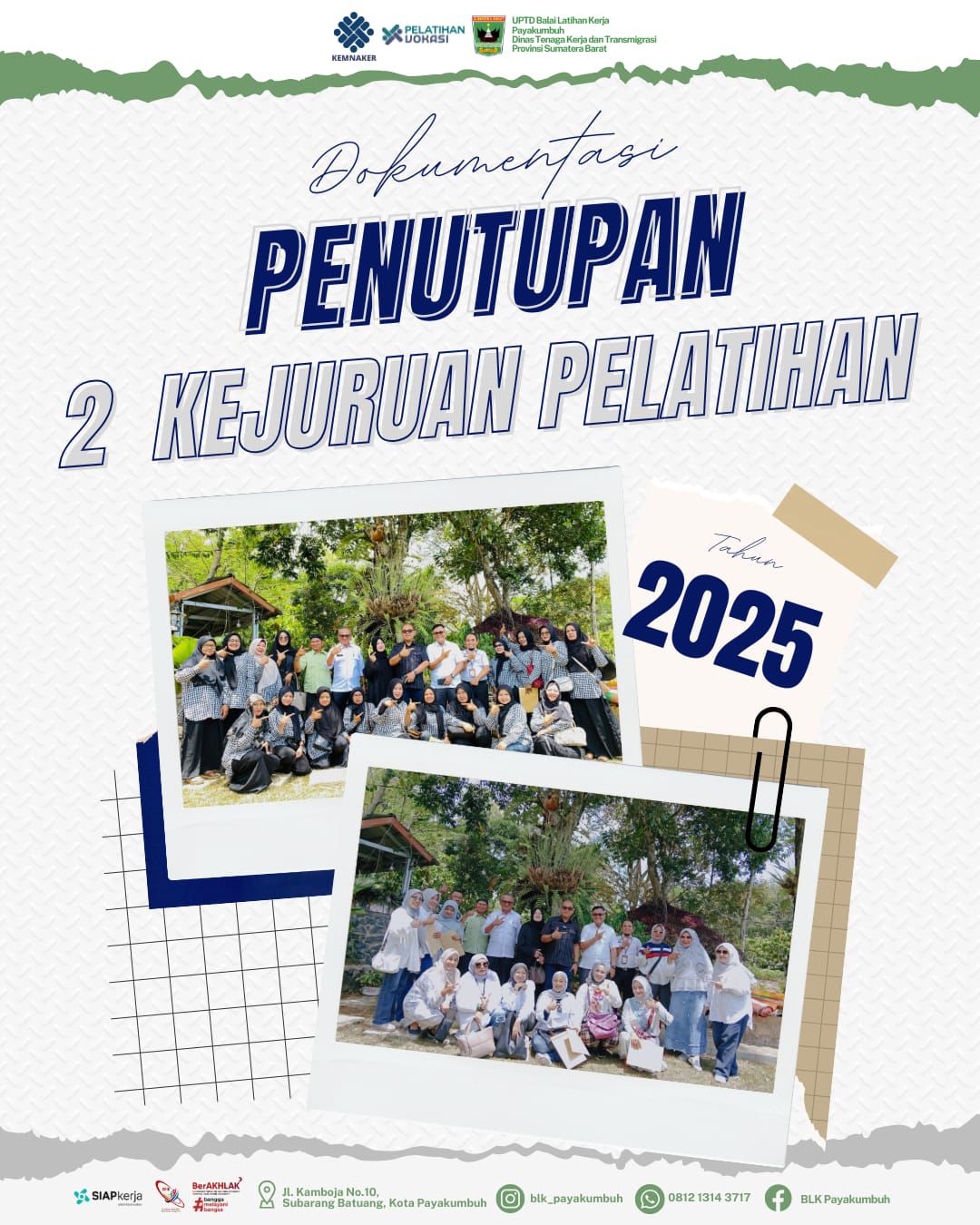 cMczone.com– UPTD BLK Payakumbuh Dinas Tenaga Kerja dan Transmigrasi Provinsi Sumatera Barat sukses menyelenggarakan pelatihan menjahit pakaian (240 JP) dan pelatihan pembuat kue (160 JP) tahun anggaran 2025.