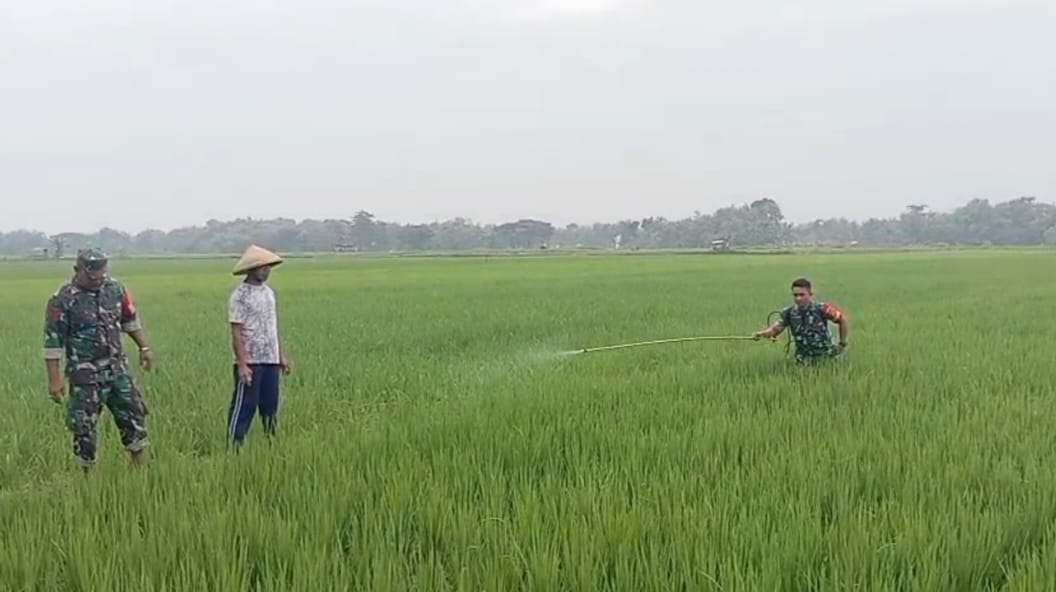 Babinsa Sigap Bantu Petani, Lakukan Penyemprotan Massal Cegah Hama Ulat Padi