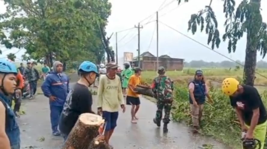 cMczone.com, Sragen – Curah hujan yang disertai angin kencang pada Hari Jum’at (03/10/2025) menyebabkan sebuah pohon berukuran besar tumbang dan menutup sebagian badan jalan di Dukuh Saradan Desa Saradan Kecamatan Karangmalang. Melihat kondisi tersebut, Serda Batjo segera turun tangan membantu warga melakukan pembersihan agar akses jalan kembali normal.