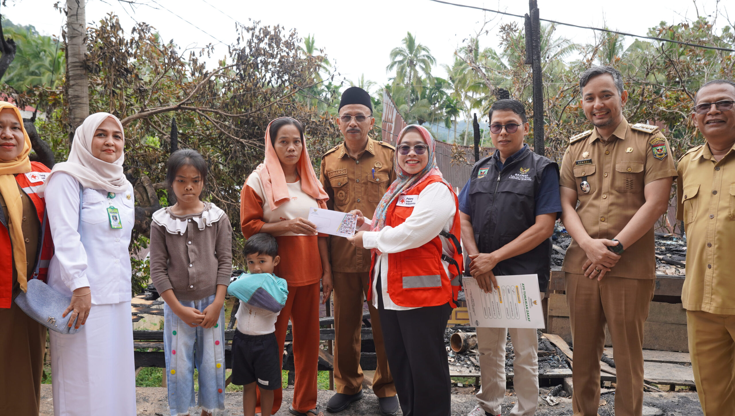 Bantuan yang diserahkan berasal dari sinergi lintas instansi, yakni Baznas Sijunjung, PMI Kabupaten Sijunjung serta Dinas Sosial PP dan PA.