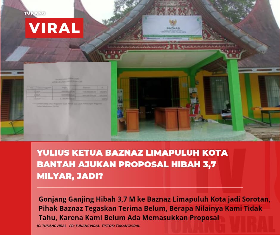 cMczone.com– Pasca terkuaknya rencana hibah APBD Kabupaten Limapuluh Kota tahun anggaran 2026 kepada badan amil zakat nasional (Baznas), Ketua Baznas Yulius bantah ajukan proposal hibah, Selasa 14 April 2026.