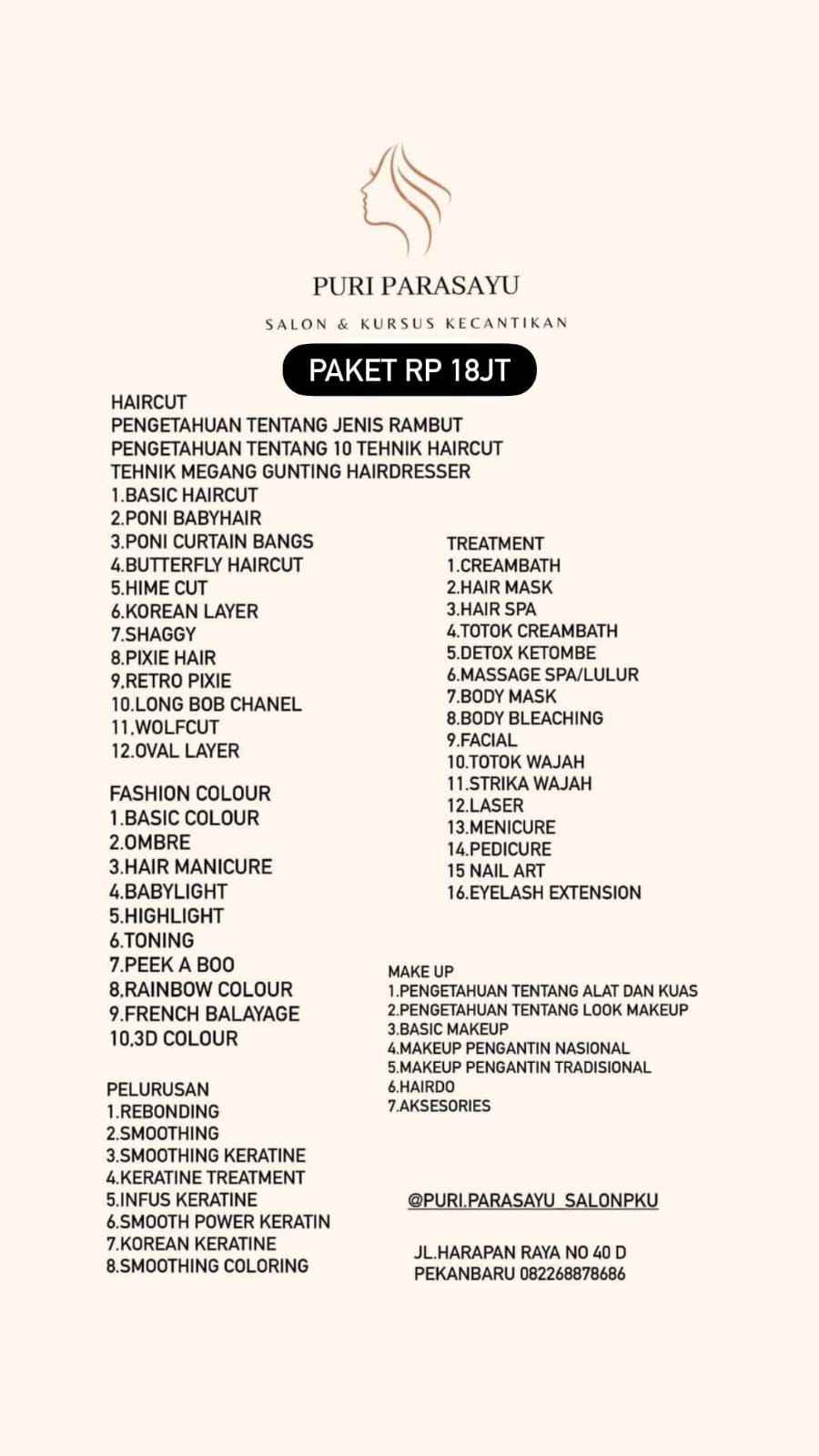 Puri Parasayu Tempat Kursus Salon Terbaik Di Pekanbaru, Telah Banyak Melahirkan Salon- salon Besar
